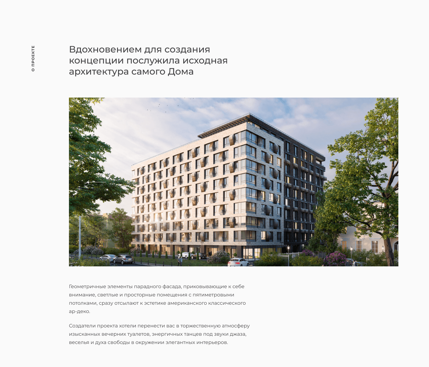Создатели проекта хотели перенести вас в торжественную атмосферу изысканных вечерних туалетов, энергичных танцев под звуки джаза, веселья и духа свободы в окружении элегантных интерьеров.